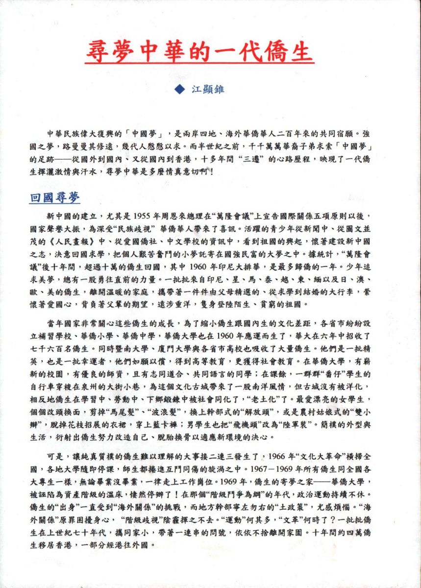 寻梦中的一代侨生